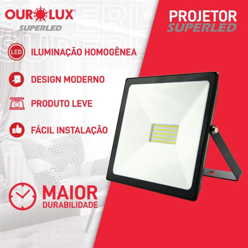 Os projetores LED Ourolux são ideais para ambientes internos ou externos proporcionando alta luminosidade e resistência garantindo redução no consumo de energia.